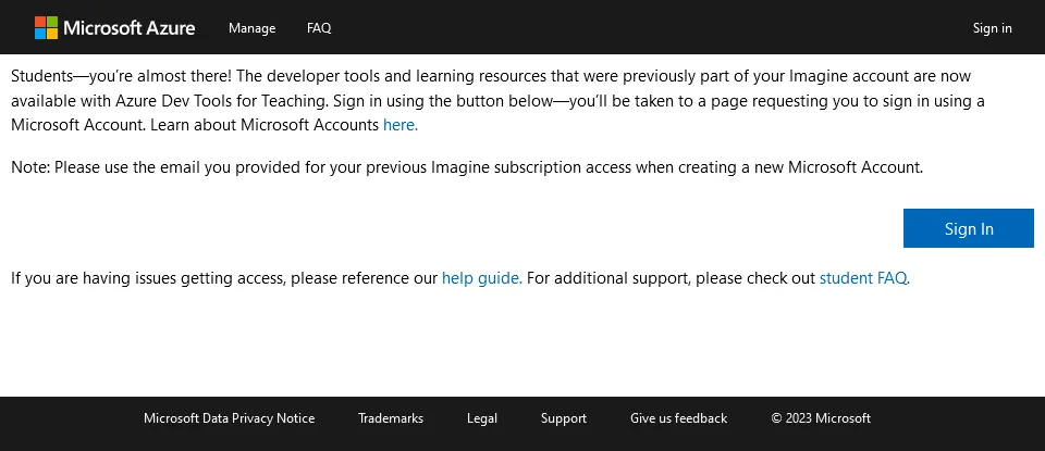 - Access the following Azure Dev Tools for Teaching page below. Azure Dev Tools for Teaching