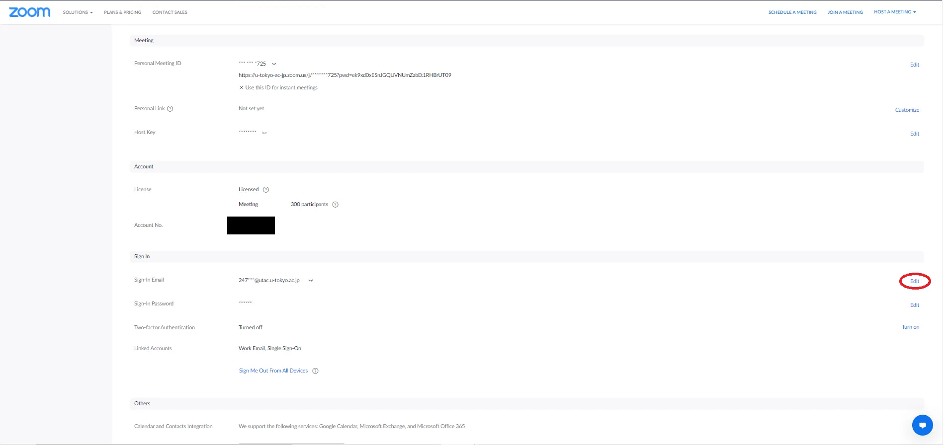 However, if you have manually created a new Zoom account using 1234567890@g.ecc.u-tokyo.ac.jp as the sign-in email address after the System Changeover, the system will no longer let you sign in with it. Please follow the steps below to switch to an account that uses your UTokyo Account for sign-in.