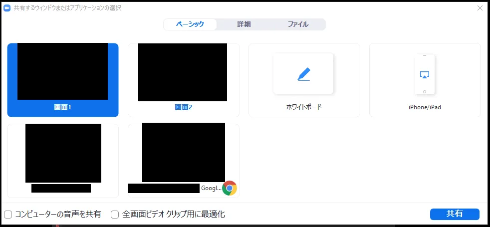 • When “Screen” is selected, the screen of the person sharing the image itself is shared with everyone (If there are multiple screens such as a multi-monitor like an image, screen 1 and screen 2 have more options).