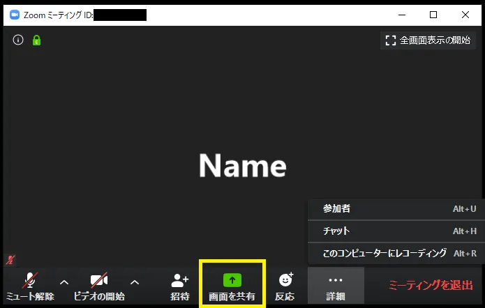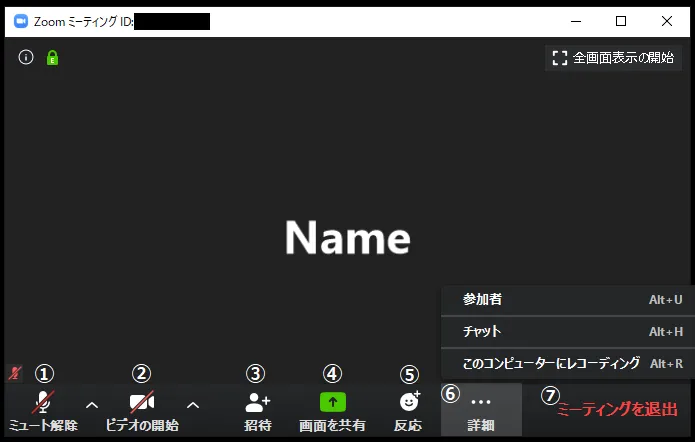 7. Leave meeting : Leave the meeting. A confirmation screen appears after you press it, so you do not exit immediately when you press the button.